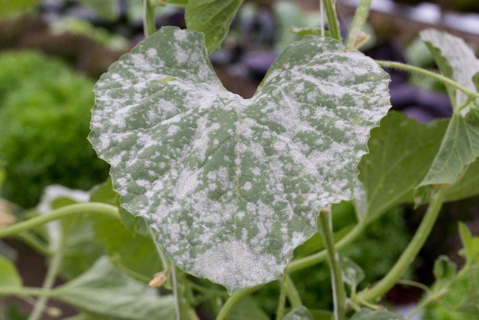 Мучнистая роса — это широко распространенное заболевание, которое затрагивает большинство овощных культур. Оно возникает из-за слишком плотных посадок, где нарушается циркуляция воздуха. Кроме того, способствуют развитию болезни полив холодной водой и резкие колебания температуры.