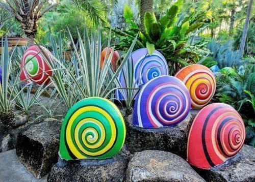 | Камни, галька | Каменные башни, животные (божьи коровки, змеи), мозаичные дорожки, декоративные фонтаны | Клей для камня, цементный раствор, кисти, акриловые краски, лак |