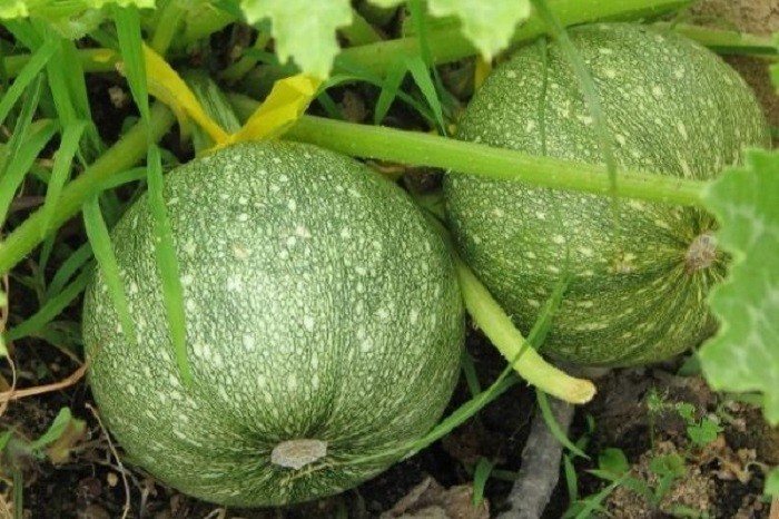 - Плоды кабачков имеют шарообразную форму и могут весить до 2,1 кг. Их окраска светло-зеленая с серебристым оттенком, а на поверхности присутствуют небольшие черные точки или полоски.