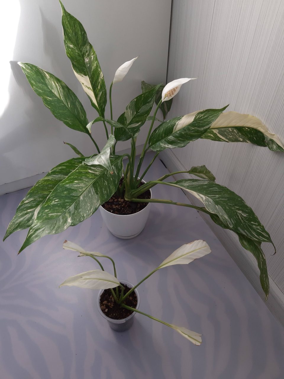 | Спатифиллум Вариегата (Spathiphyllum ‘Variegata’) | Листья с белыми или желтыми полосами, белые покрывала | Избегать прямых солнечных лучей, умеренный полив |