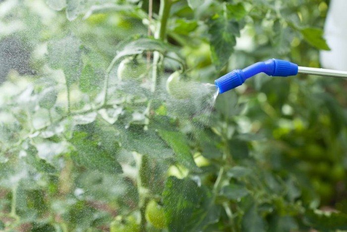 Если на листьях появляются признаки хлороза и наблюдается замедление роста, томаты следует опрыскать раствором. В этом случае концентрация должна быть вдвое ниже. Внекорневая подкормка используется как экстренная мера. Попадая на листья, раствор быстро впитывается и усваивается растениями.