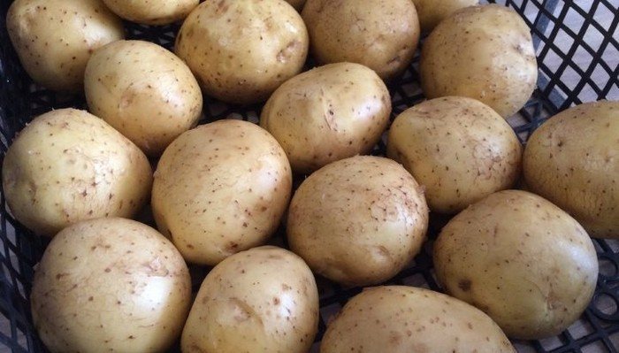 Молодые клубнеплоды покрыты нежной, тонкой, наполовину прозрачной кожурой. Старая же картошка более сморщенная, кожура её толстая и непрозрачная. Важно! Следует избегать покупки картошки, кожура которой имеет зеленоватый оттенок.