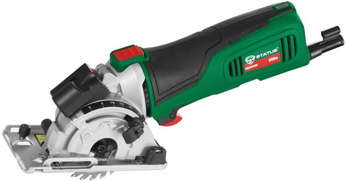 Эта универсальная мини-циркулярная пила, работающая от сети, обладает мощностью 600 Вт. Максимальная скорость вращения диска достигает 5500 об/мин. Глубина реза для различных материалов составляет: 28,5 мм для древесины, 8 мм для керамики и 3 мм для металла. Корпус устройства выполнен из прочного алюминия, что обеспечивает отличную теплоотдачу и предотвращает перегрев мотора. Одной из ключевых особенностей данной модели является высокая точность реза, достигаемая благодаря параллельному упору и лазерному маркеру.