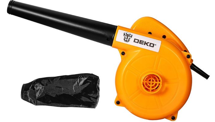 В нашем рейтинге лучших воздуходувок эта модель занимает первое место по доступности. Несмотря на свою низкую цену, она не сильно уступает более дорогим вариантам в качестве материалов и сборки, а по функциональности даже превосходит некоторые из них. Это компактная модель, весом всего 1 кг. Она может использоваться как воздуходувка и как пылесос. В комплект входит тканевый мешок для сбора мусора, который удобно крепится на выходное отверстие с помощью резинки. Сопло надежно фиксируется на корпусе с помощью байонетного соединения.