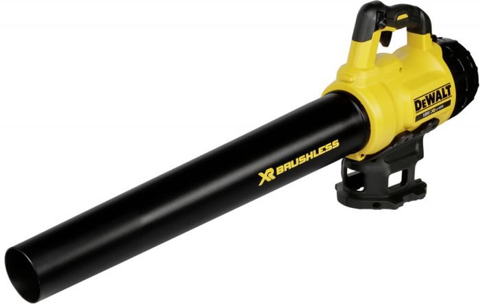 Воздуходувка от известного американского производителя аккумуляторной техники производится в Китае. В комплекте с устройством отсутствуют аккумулятор и зарядное устройство. Эта модель совместима со всеми аккумуляторами платформ FLEXVOLT 54 В и XR 18 В. Данное преимущество будет полезно для тех, кто уже использует другую продукцию этого бренда, что позволит существенно сэкономить на покупке новых элементов питания. Бесщеточный электромотор обеспечивает воздушный поток объемом 720 м³/ч с максимальной скоростью 144 м/с. Эти показатели позволяют эффективно очищать большие площади от листвы и сухого снега. Полного заряда аккумулятора хватает на 15-20 минут работы. Скорость потока можно плавно регулировать, а клавишу управления можно зафиксировать в нужном положении.