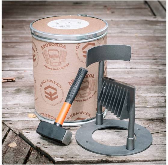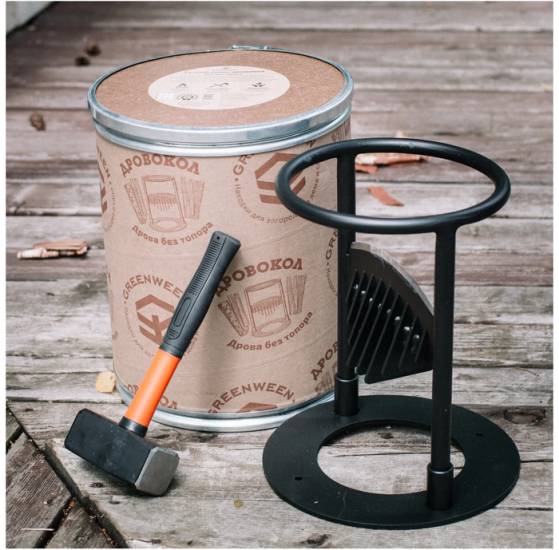 Этот удобный инструмент привлекает покупателей своей доступной ценой и компактными размерами. Конструкции изготовлены из стали и покрыты защитной краской, которая устойчива к механическим повреждениям. Дровоколы «ГринВин» выделяются оригинальной упаковкой. Продукт поставляется в тубусе из клееного картона, дополненном алюминиевым ободком. В таком оформлении дровокол станет отличным подарком.