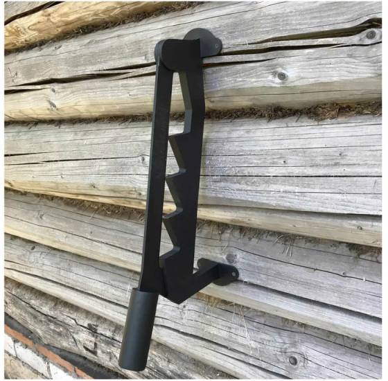 Одним концом лезвие крепится к станине. Соединительные барашки легко отвинчиваются, что позволяет при необходимости нарубить ветки или заточить лезвие. Рукоятка на противоположном конце ножа надежно закреплена и изготовлена из материала, предотвращающего скольжение. Если совместить лезвие и станину, можно через общее отверстие заблокировать доступ с помощью навесного замка.