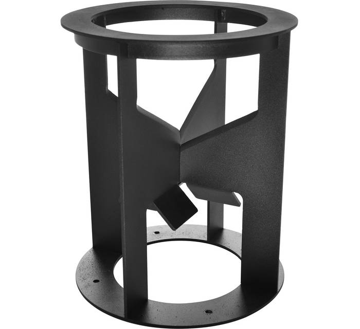Верхнее кольцо ограничивает максимальный диаметр заготовки до 180 мм, а нижнее плоское кольцо обеспечивает стабильную опору. Все компоненты обработаны порошковой эмалью, что защищает их от коррозии и позволяет использовать дровокол на улице в любых погодных условиях.