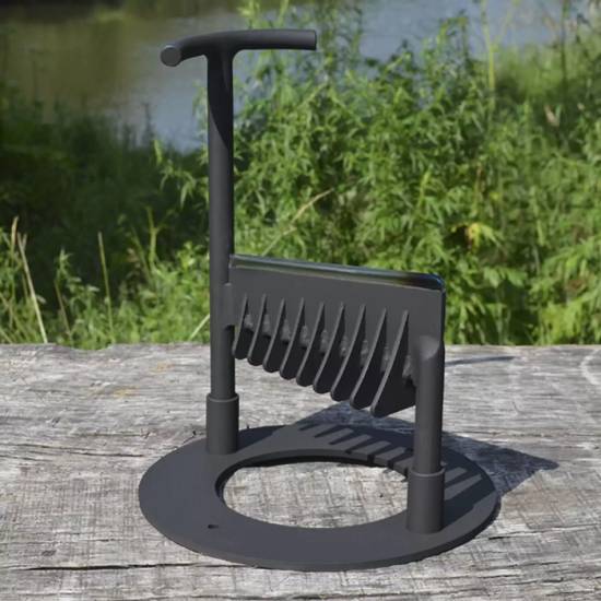 Удобен для переноски и может быть установлен рядом с топкой на надежном основании.
