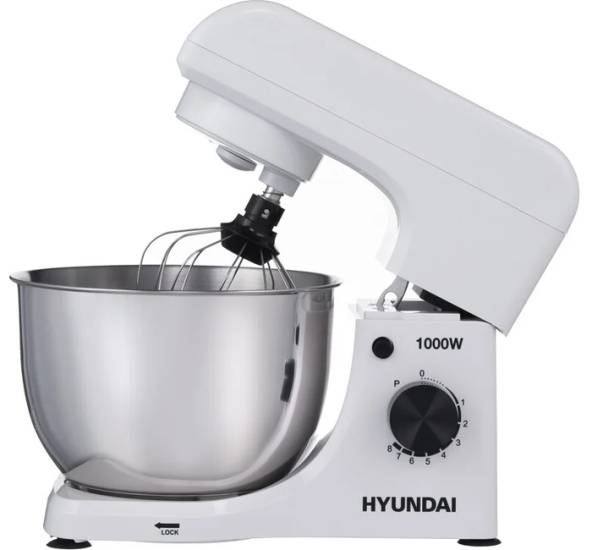 Еще одна доступная модель с отличными характеристиками – планетарный миксер Hyundai HYM-S4451, который легко справляется с даже самыми сложными кулинарными задачами благодаря своей мощности в 1000 Вт. Его главное преимущество заключается в том, что с его помощью можно как взбить легкое безе, так и замесить плотное тесто.