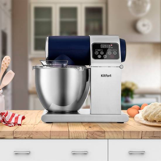 Объем чаши составляет 4 литра, а сам миксер отличается компактными размерами и весом всего 5 кг. Его удобно размещать и хранить на кухне, а благодаря прорезиненным ножкам он не скользит по поверхности и остается устойчивым даже при активной эксплуатации.