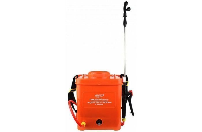 Опрыскиватель оборудован баком объемом 16 литров, что позволяет длительное время работать без необходимости в дозаправке. Он имеет широкое основание, что обеспечивает стабильность на горизонтальных поверхностях. Вес устройства составляет 5,2 кг. Диаметр распыления достигает 4 метров, а расход жидкости составляет 3,2 литра в минуту.