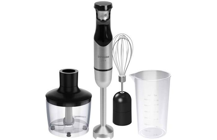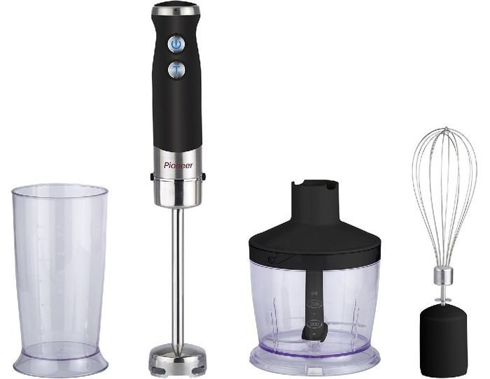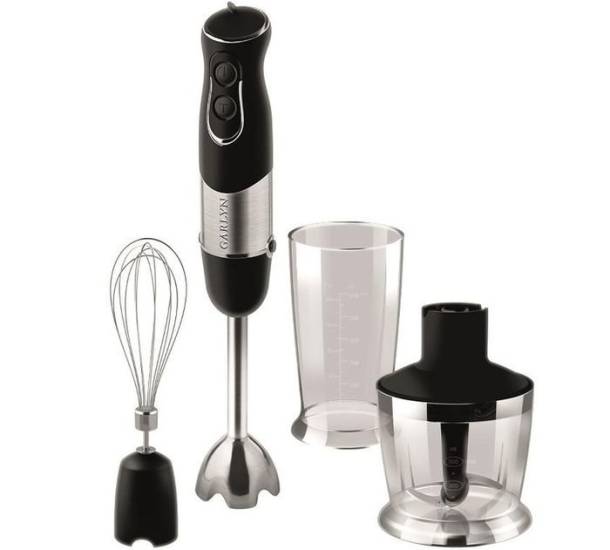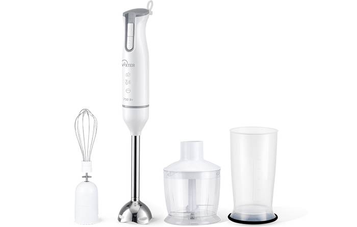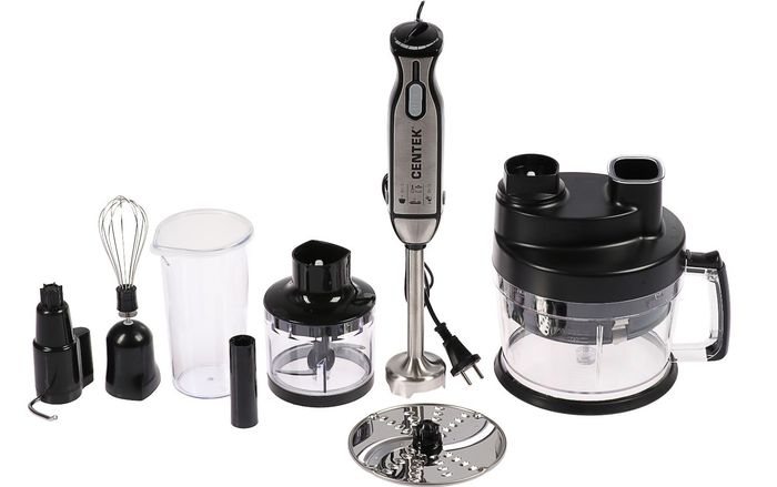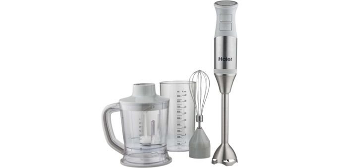 Блендер предлагает впечатляющую комплектацию за свою цену. В комплекте с устройством и погружной насадкой покупатель также получит мерный стакан объемом 0,5 литра, чашу-измельчитель на 0,5 литра и венчик. Максимальная мощность прибора составляет 750 Вт. Из-за использования пластиковых корректоров производитель рекомендует делать перерывы каждые 2-3 минуты работы. Однако при такой мощности и объеме аксессуаров этого времени вполне достаточно для выполнения поставленных задач. Погружная насадка выполнена из нержавеющей стали.