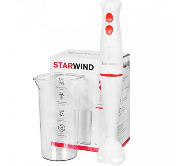 Технику под брендом STARWIND производит российская компания, имеющая завод в Китае. Блендер модели SBP1142 соответствует этим требованиям. Его корпус выполнен из прочного ударостойкого пластика, который выглядит очень привлекательно. В набор входит высокий мерный стакан объемом 0,6 литра и погружная насадка, также изготовленная из пластика. Конструкция рабочей головки и расположение лезвий тщательно продуманы, что обеспечивает быстрое и равномерное измельчение продуктов.