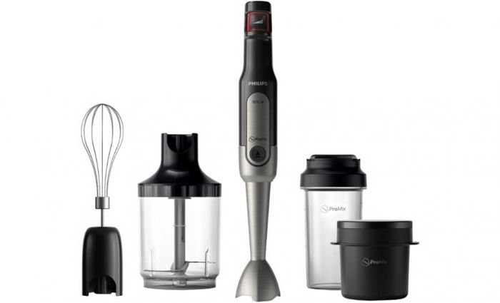 Блендер из новой серии Viva от компании Филипс представляет собой идеальное сочетание современных технологий, удобства в использовании и элегантного дизайна. Погружная насадка ProMix гарантирует качественное измельчение и смешивание ингредиентов даже в больших объемах благодаря уникальной конструкции потоков внутри емкости. Чаша чоппера имеет объем 1 литр, что обычно встречается у полноразмерных кухонных комбайнов. В комплект входят две дорожные емкости с герметичными крышками: одна для супа объемом 300 мл и другая для смузи на 500 мл. Переключение скоростей осуществляется с помощью технологии SpeedTouch, которая позволяет изменять интенсивность нажатия на одну кнопку. При желании блендер можно дополнить различными аксессуарами.