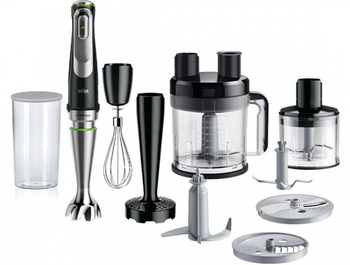 | 2 | Braun MultiQuick 9 MQ 9187XLI | Технология ActiveBlade, мощность 1200 Вт, 21 скорость + импульсный режим, насадка для кубиков |