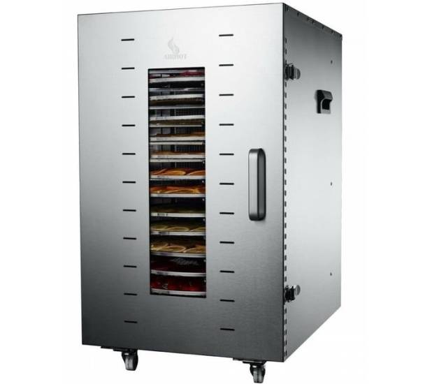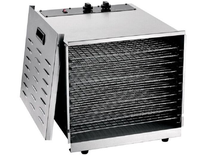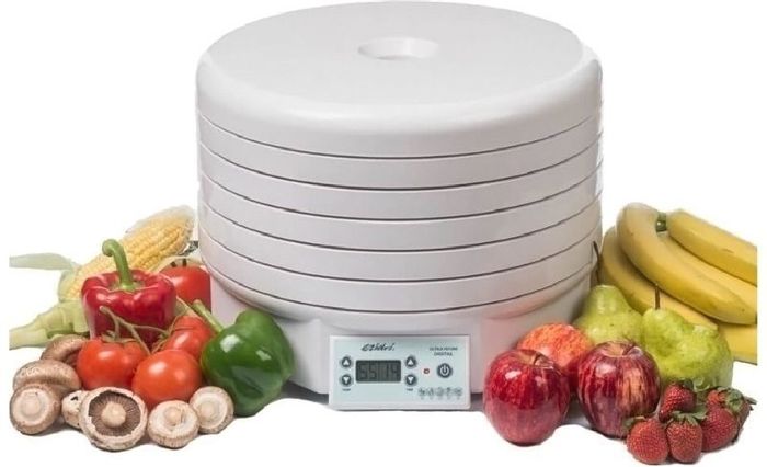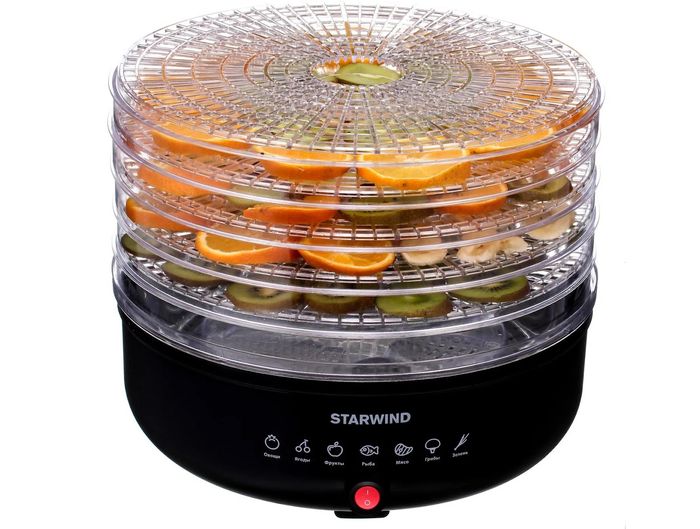 Прибор для сушки, который позволяет готовить сухофрукты, сушить грибы и зелень. По мнению многих пользователей, это одна из лучших бюджетных сушилок. Корпус устройства выполнен из прочной нержавеющей стали, что обеспечивает его долговечность. Внутри находится мощный нагревательный элемент, автоматический терморегулятор и вентилятор. Удобные поддоны из безопасного пищевого пластика имеют вместимость 20 литров, легко снимаются и очищаются.
