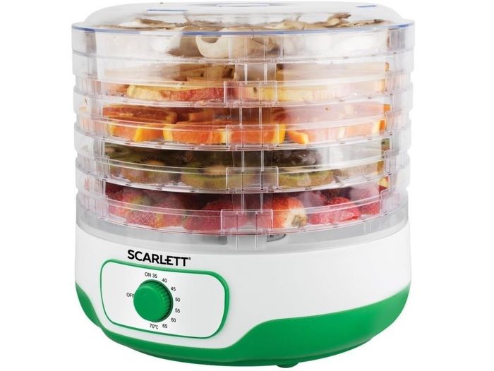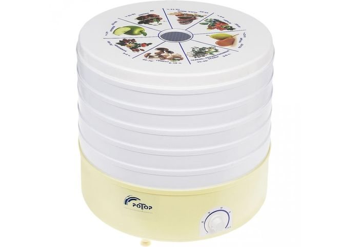Электрическая сушилка конвективного типа, выполненная в металлическом корпусе. Поддоны из непрозрачного пластика способны вместить до 3,5 кг различных продуктов, включая грибы, фрукты, мясо и овощи.