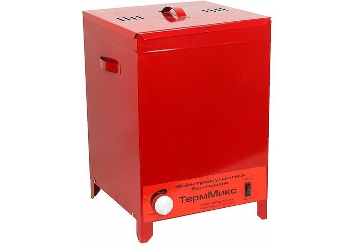 Электросушилка ТермМикс представляет собой простое в использовании бытовое устройство с механическим управлением. Производитель предлагает разнообразные яркие цвета корпуса. Надежность работы обеспечивается цельнометаллическим корпусом. Эффективная дегидрация достигается благодаря конвективной сушке с нагревательным элементом и вентилятором. На передней панели расположены кнопка для включения сушилки и рычаг для регулировки температуры. Внутри устройства можно одновременно высушивать до 18 литров продуктов.