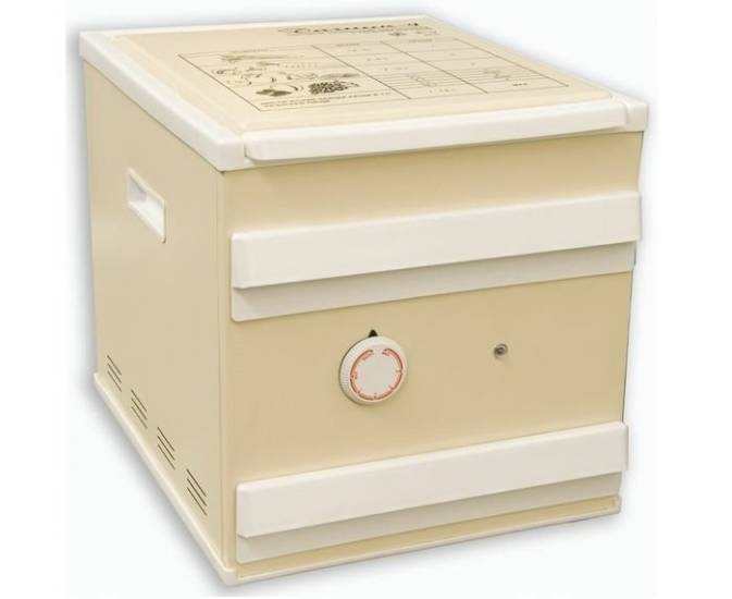 Устройство оснащено терморегулятором, который позволяет устанавливать температурный режим в диапазоне от 30 до 60 °C.