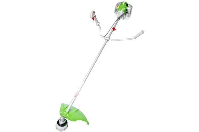 Триммер обеспечивает безопасность во время эксплуатации. Специальный защитный кожух предохраняет от летящих травинок и мелких предметов. Модель выделяется хорошо сбалансированной конструкцией. Устройство оснащено надежным мотором и имеет функцию, упрощающую запуск. Воздушное охлаждение гарантирует длительный срок службы.
