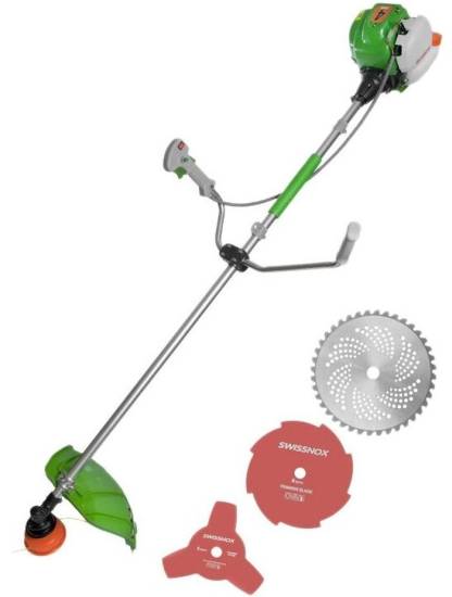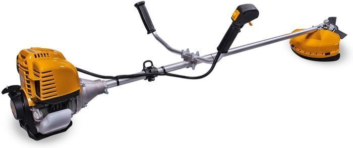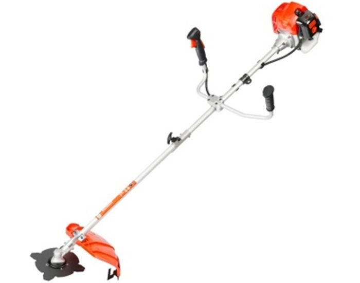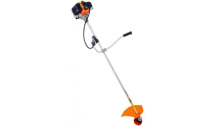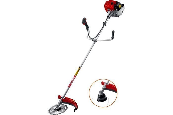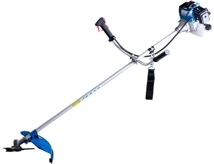 Бензокоса оснащена запатентованной системой легкого запуска, что уменьшает усилия при вытягивании шнура. Для работы триммер использует леску диаметром 3 мм, которая устанавливается в прочную полуавтоматическую шпулю. В комплект также входит стальной диск, предназначенный для обработки кустарников.