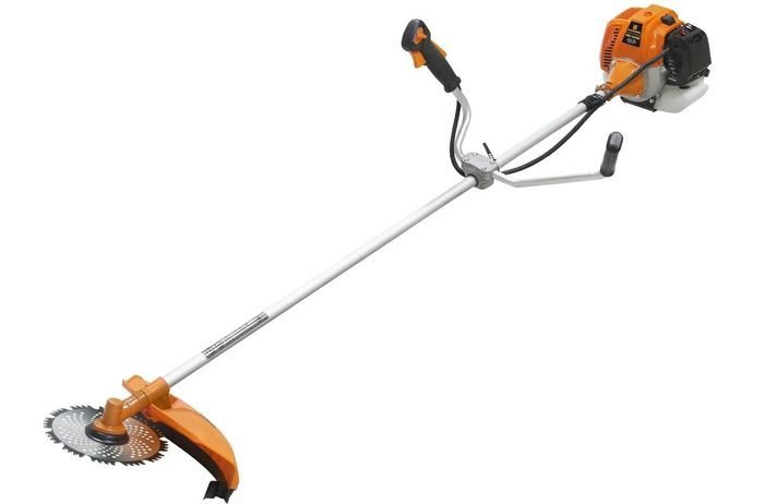 Этот инструмент предназначен для скашивания густой травы в труднодоступных местах. Он отлично подходит для работы на неровных и больших участках, а также для удаления сухостоя, тонких деревьев и небольших кустарников. Модель оснащена двойным ремнем с пластиковой накладкой для удобства использования.