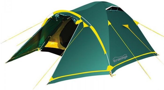 Трёхместные палатки с большим объёмом идеально подходят для кемпинга и длительных походов в компании друзей. Просторный тамбур позволяет разместить всё необходимое снаряжение. В случае необходимости, в тамбуре можно организовать кухонное пространство, что особенно удобно в условиях плохой погоды. Обычно такие палатки имеют два слоя и обеспечивают отличную вентиляцию, что способствует комфортному отдыху ночью.