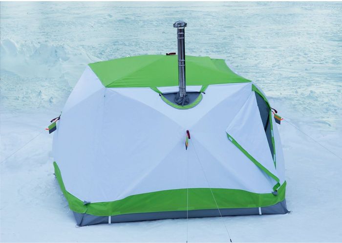 Для зимней рыбалки подойдут палатки без пола или с отверстиями для лунок, а также с возможностью установки печки.