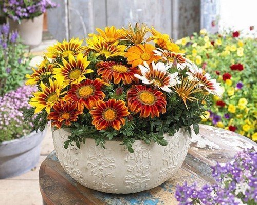 Кусты гацании можно пересадить в горшок и перенести в помещение. Растение следует держать в прохладном и хорошо освещенном месте. Необходимо помнить, что гацания не переносит избыточного полива. Весной такие кусты успешно приживаются на клумбах и радуют ранним цветением.