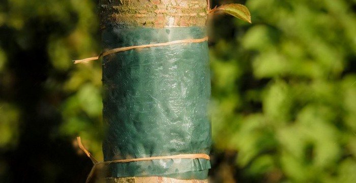 В крону яблонь вылупившиеся личинки поднимаются из верхнего слоя почвы по стволу. Для защиты дерева в данной ситуации можно применить барьерный метод с использованием клеевых ловушек. Нижнюю часть ствола обматывают липкой бумажной лентой или обвязывают тканью, на которую наносят специальный состав:
