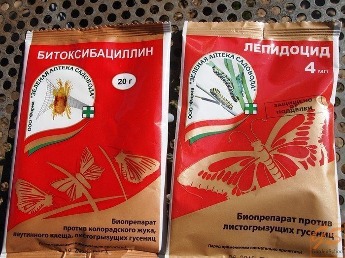 Биологические средства не причиняют вреда ни окружающей среде, ни человеку, и не накапливаются в плодах. Эти препараты эффективно справляются с яблонной плодожоркой. Для защиты сада от вредителей можно использовать: