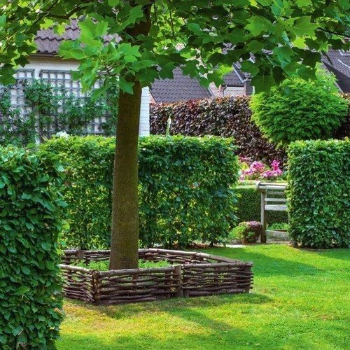Низкие и средние ограждения формируются из кустарников, тогда как высокие изгороди создаются из деревьев, таких как дуб, липа, клен и сирень.