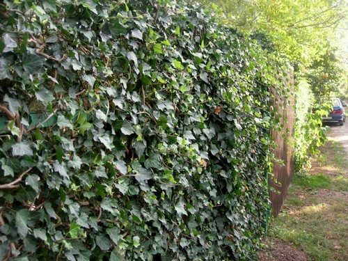 Вьющиеся растения применяются для создания «шпалерных» конструкций. Гибкие побеги равномерно располагаются по основе (металлической или пластиковой сетке, деревянной раме), переплетаясь между собой.