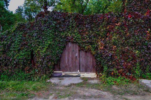 Старый забор, который выглядит не очень привлекательно, можно преобразить с помощью вьющихся растений, таких как ипомея, виноград или жимолость.
